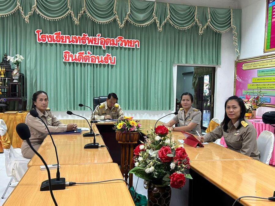 วันที่ 2 กรกฎาคม 2567 นายดรุณนิรุตน์ ศักดิ์อุบล ผู้อำนวยการโรงเรียนทรัพย์อุดมวิทยา พร้อมด้วยคณะครูผู้รับผิดชอบเข้าร่วมประชุมคณะกรรมการการดำเนินงานขับเคลื่อนการเตรียมความพร้อมผู้เรียน รองรับการประเมินระดับนานาชาติ(PISA2025) ระดับสถานศึกษา โดยใช้รูปแบบออนไลน์(Zoom Meeting )ผ่านระบบ Application Zoom Cloud Meetingsณ ห้องประชุม โรงเรียนทรัพย์อุดมวิทยา S:0