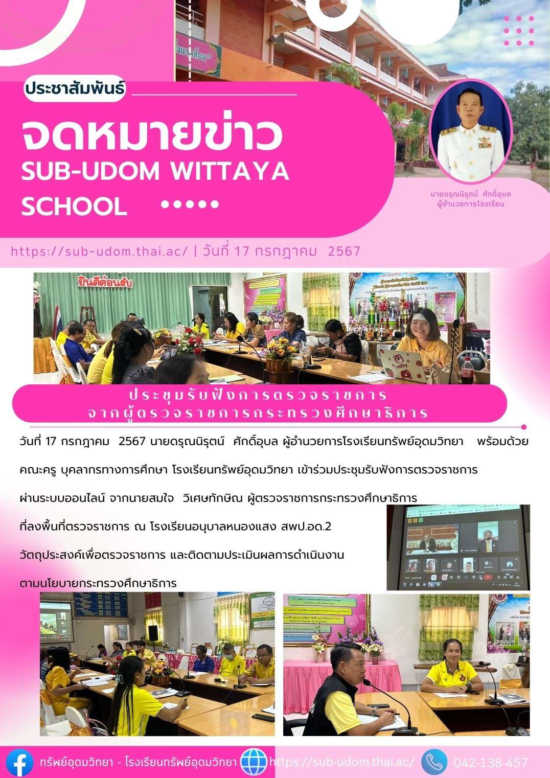 E-mail : subudom.school@gmail.com 113 หมู่ 1 ต.บ้านจันทน์ อ.บ้านดุง จ.อุดรธานี 41190