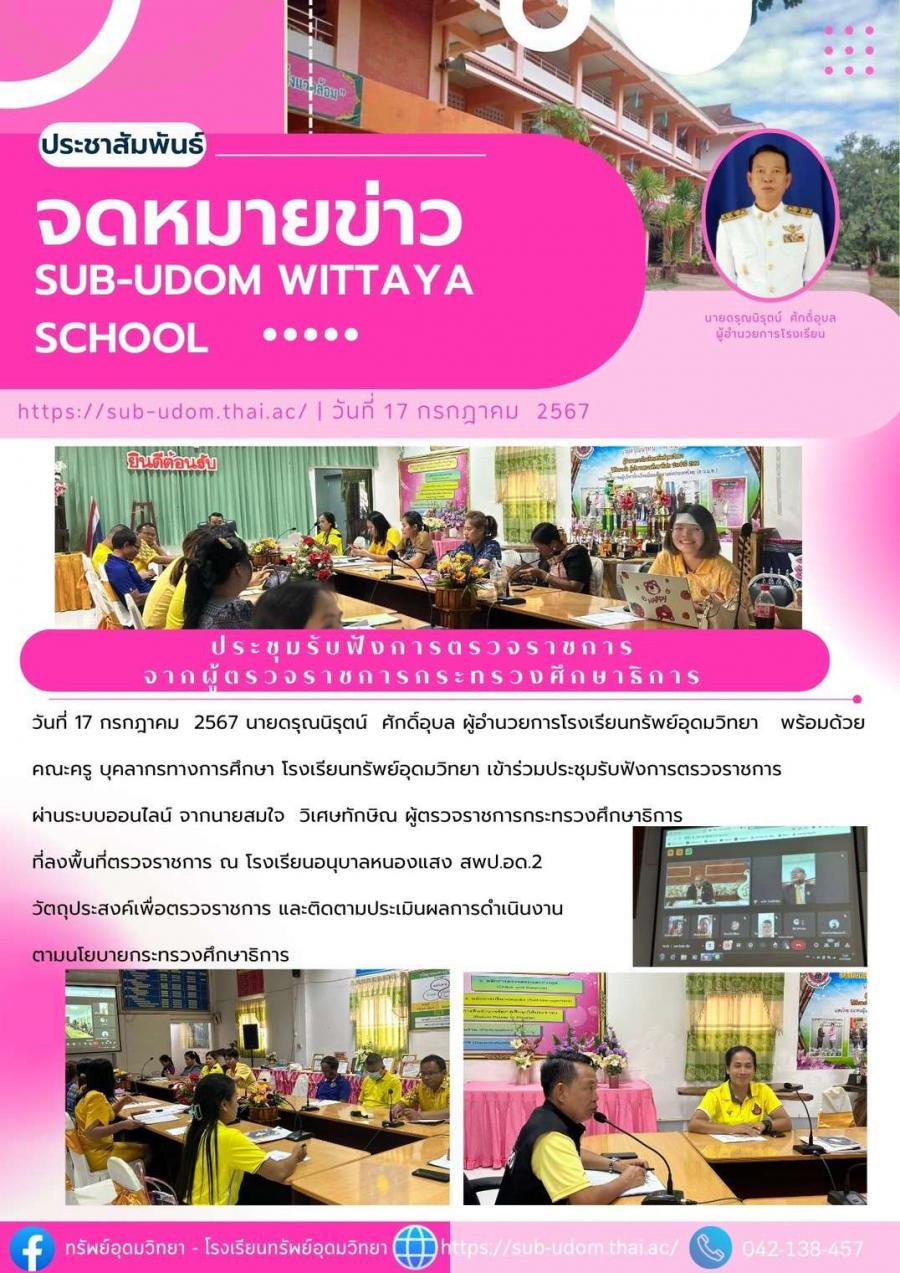 เข้าร่วมประชุมรับฟังการตรวจราชการผ่านระบบออนไลน์ จากนายสมใจ วิเศษทักษิณ ผู้ตรวจราชการกระทรวงศึกษาธิการที่ลงพื้นที่ตรวจราชการ