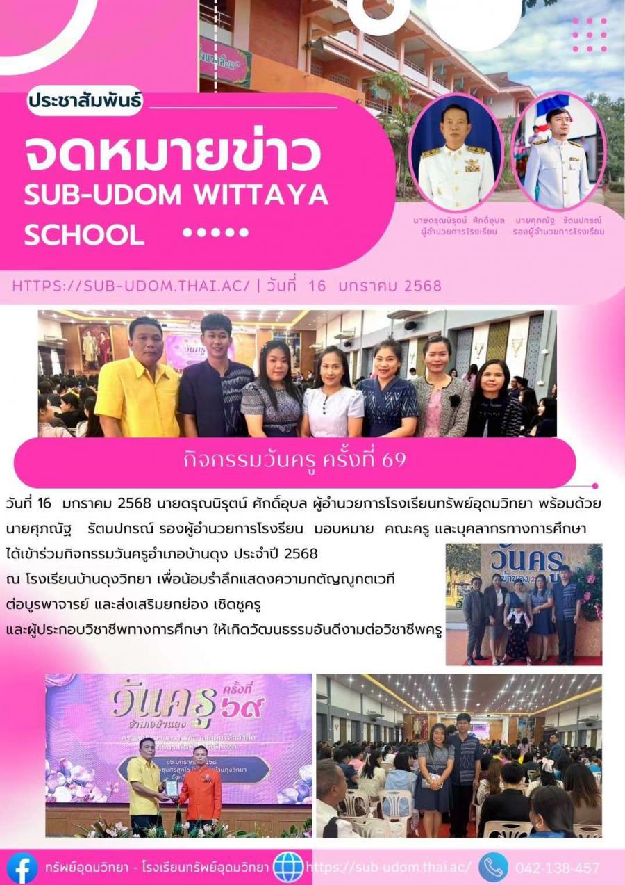 วันที่ 16 มกราคม 2568 นายดรุณนิรุตน์ ศักดิ์อุบล ผู้อำนวยการโรงเรียนทรัพย์อุดมวิทยา พร้อมด้วย