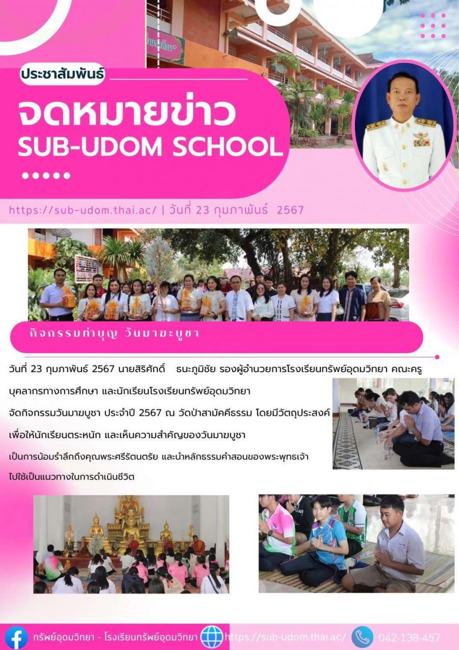 E-mail : subudom.school@gmail.com 113 หมู่ 1 ต.บ้านจันทน์ อ.บ้านดุง จ.อุดรธานี 41190