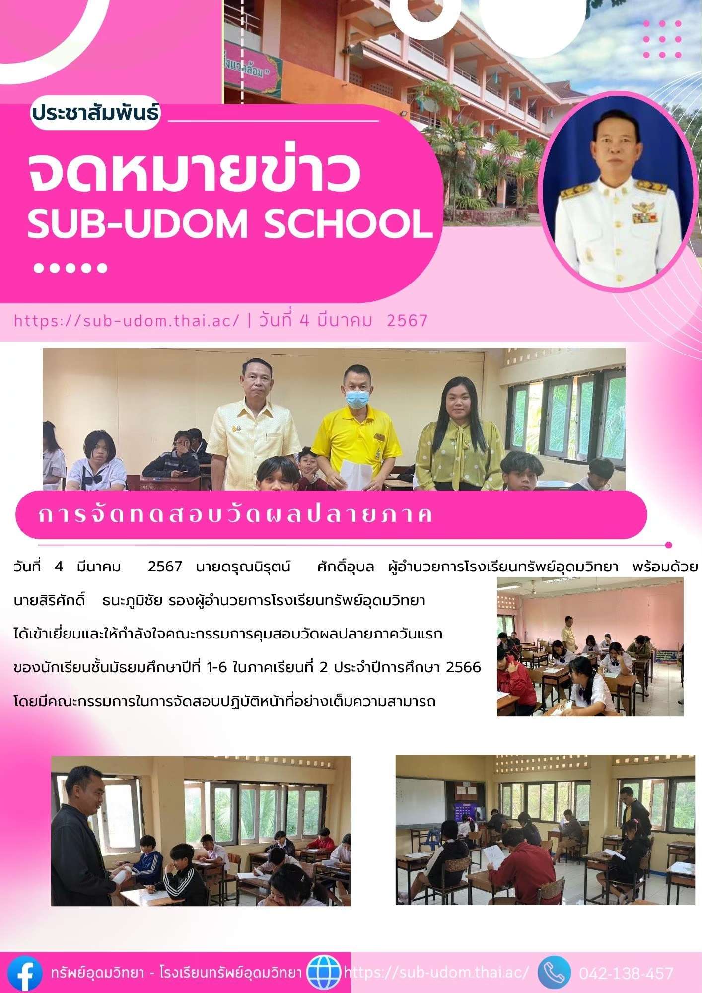 เข้าเยี่ยมและให้กำลังใจคณะกรรมการคุมสอบวัดผลปลายภาควันแรก ของนักเรียนชั้นมัธยมศึกษาปีที่ 1-6 ในภาคเรียนที่ 2 ประจำปีการศึกษา 2566