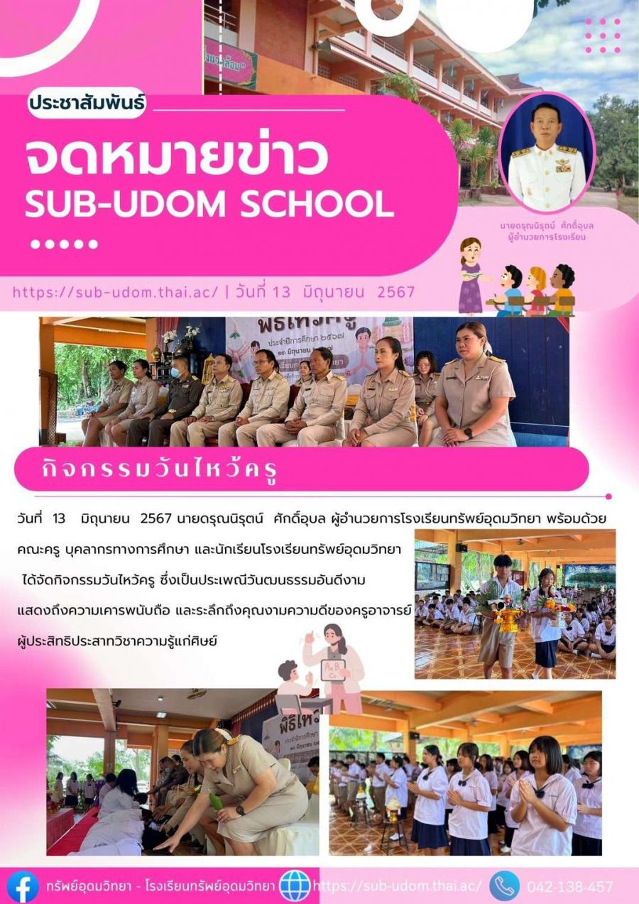 E-mail : subudom.school@gmail.com 113 หมู่ 1 ต.บ้านจันทน์ อ.บ้านดุง จ.อุดรธานี 41190
